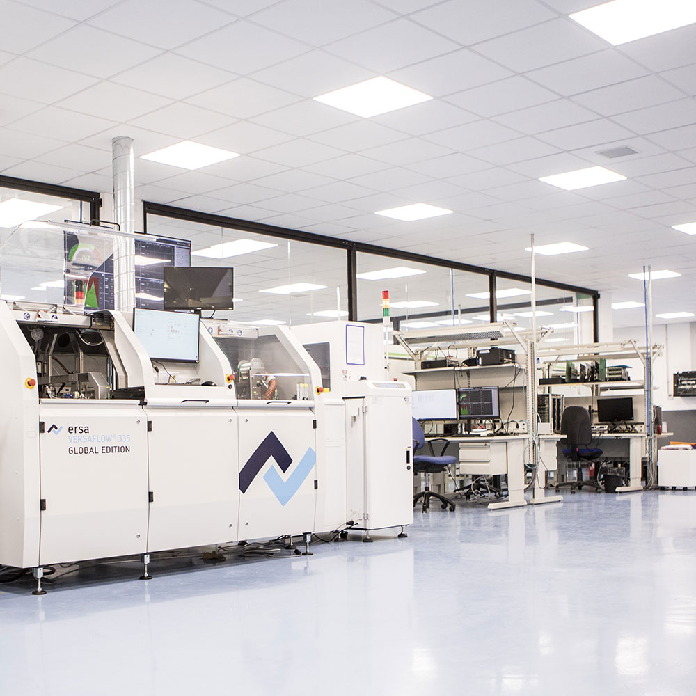 - 2 Dual Lane lines with selective wave soldering, in-line ICT testing, and in-line conformal coating.